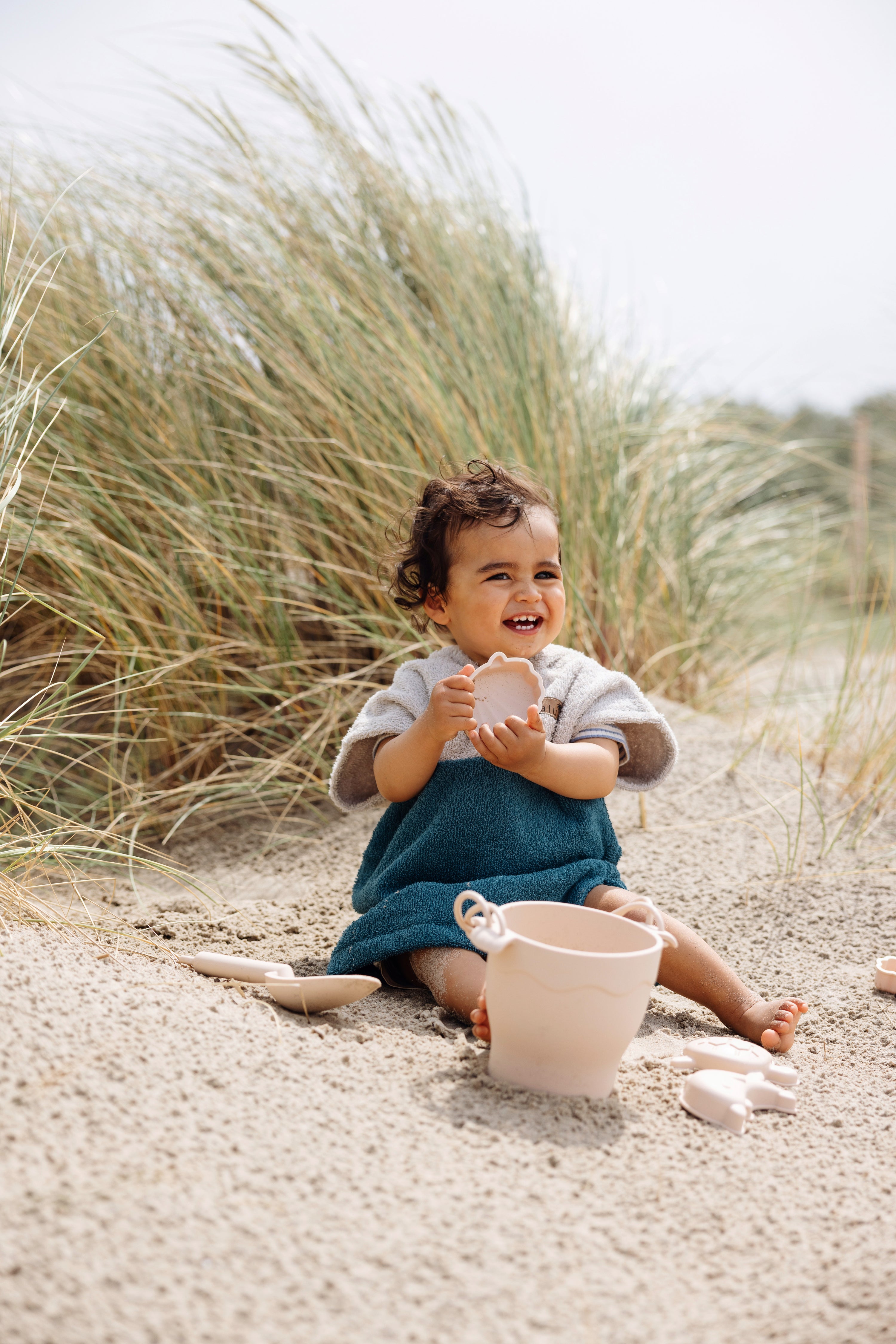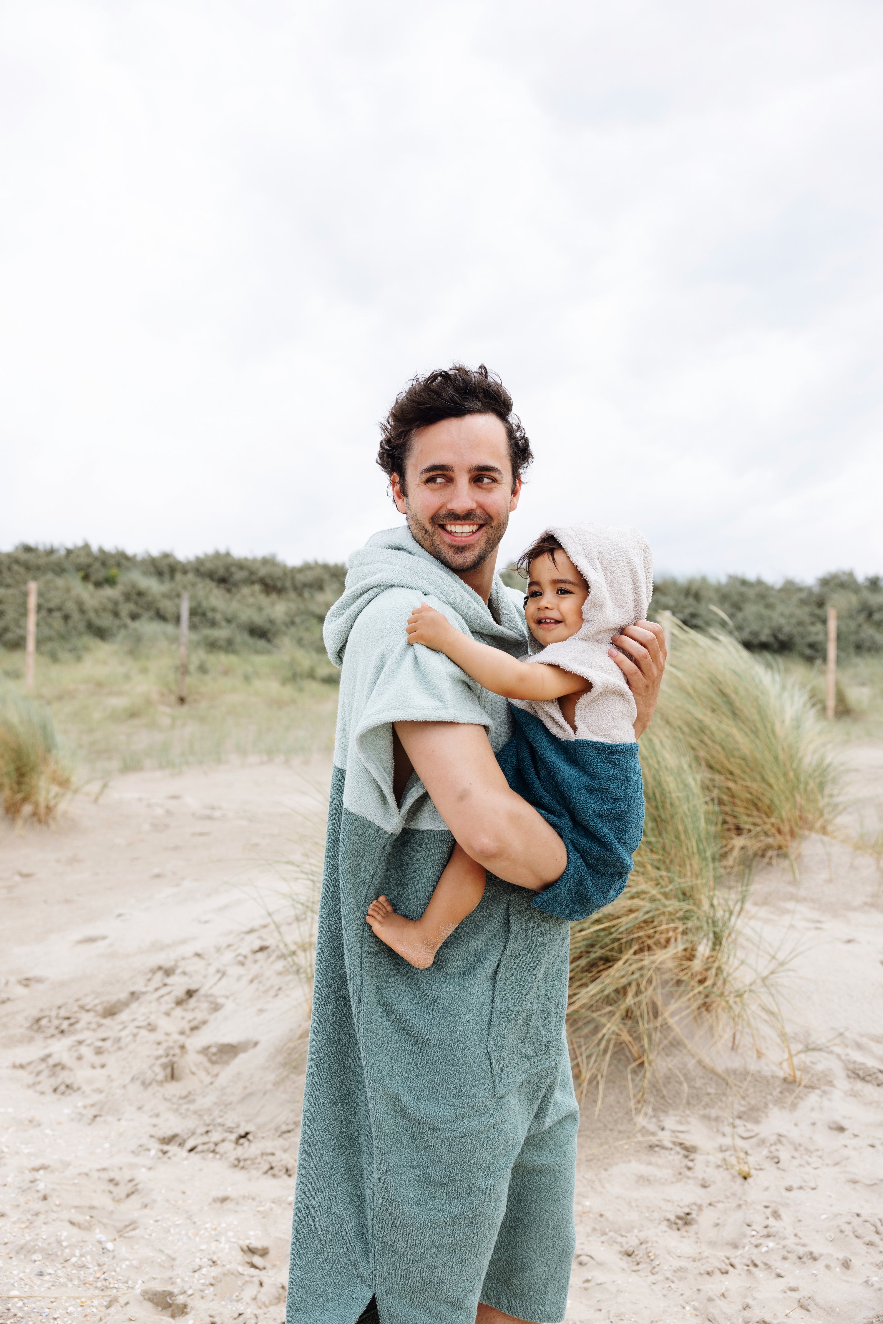 De naam Ocean staat voor rust, ruimte en de natuur aan zee. Deze zachte kleurencombinatie van beige en petrolblauw brengt dat fijne, ontspannen gevoel – alsof je geniet van een moment aan het water. Een poncho vol comfort en kalmte voor je kleintje.
