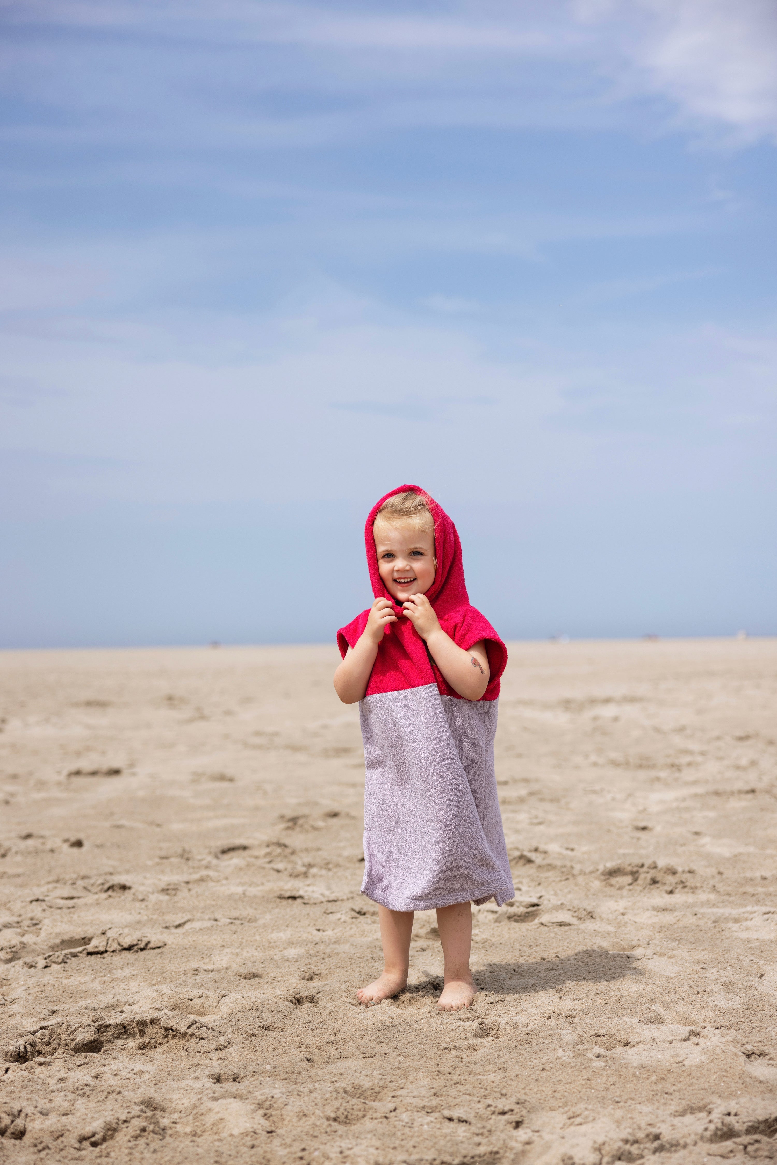 De Poncho Waikiki – Mini is er speciaal voor de allerkleinsten. De vrolijke kleurcombinatie van fuchsia boven en lila onder zorgt meteen voor een zonnige glimlach. Lekker zacht, super comfortabel en met veel liefde handgemaakt in Nederland.