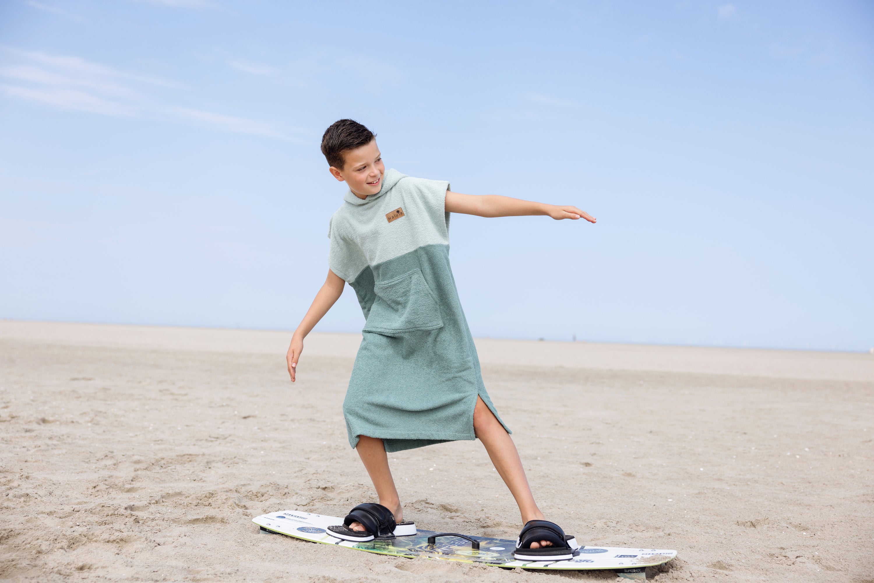 De Poncho Zanzi – Junior is speciaal ontworpen voor jonge avonturiers. Met een kalme kleurencombinatie van oudgroen boven en mintgroen onder straalt deze poncho rust en frisheid uit. De zachte badstof en ruime pasvorm maken hem perfect voor na het zwemmen, buitenspelen of een dagje strand.